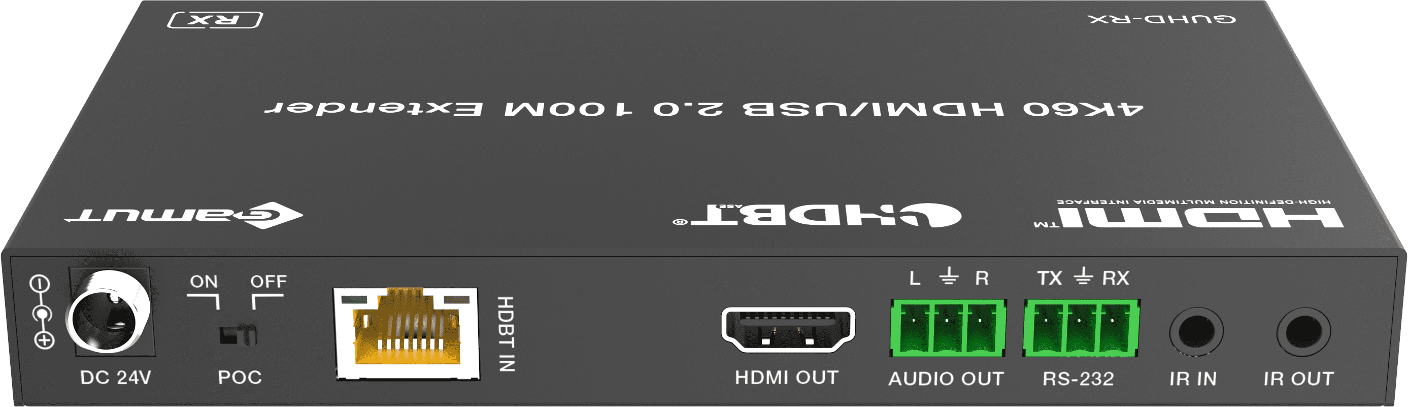- 內(nèi)置POC開關(guān),TX和RX同時打開POC開關(guān)時,支持雙向24V POC (Power Over Cable)功能,即只要在TX或RX設(shè)備一端外接24V/1A電源供電,另一端無需外部供電;